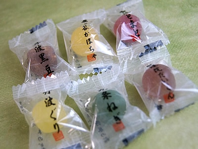 聖護院大根、金時人参、九条ねぎ、丹波栗、賀茂トマト、鹿ヶ谷かぼちゃ、丹波黒豆と七種類の京野菜からとった汁をそれぞれ飴に練り込み、野菜の風味たっぷりの飴に仕上げました。
