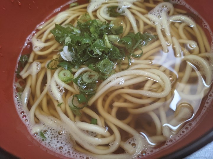 こちらの中華そばと当店で販売している関西風うどんだし(温用)を一緒に購入して頂き、あとは九条ネギの刻んだんを用意してもろたらOKです。