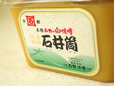 二百年の古都、京都の地で銘水「石井筒」が湧き出る洛中油小路通四条下る石井筒町。この地で二百二十余年、九代に亘り味噌醸造を営む石野味噌が銘水と厳選された国産原料の恵みにより醸し出した京都白味噌です。 国産コシヒカリ、国産鶴の子大豆を使用し、京の名水「石井筒」で仕込んだ甘くこってりとした、極めの細かい白味噌です。