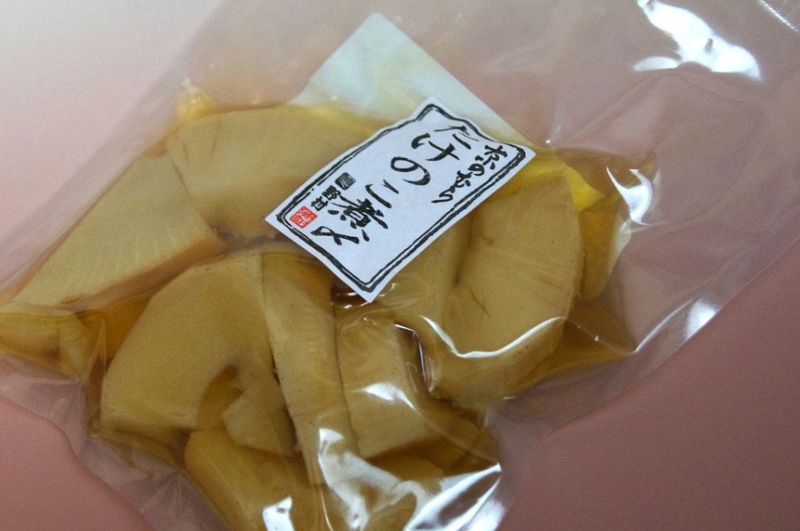 [原材料] 筍(中国)、醤油、砂糖、還元水飴、風味調味料(かつお)/調味料(アミノ酸等)、原材料の一部に小麦、乳成分、大豆を含む)