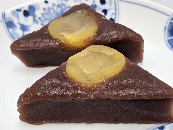 蒸し羊羹のしこしこした食感とホロホロとした甘栗の風味がまさにベストカップルのごとく、お互いを引き立てます。