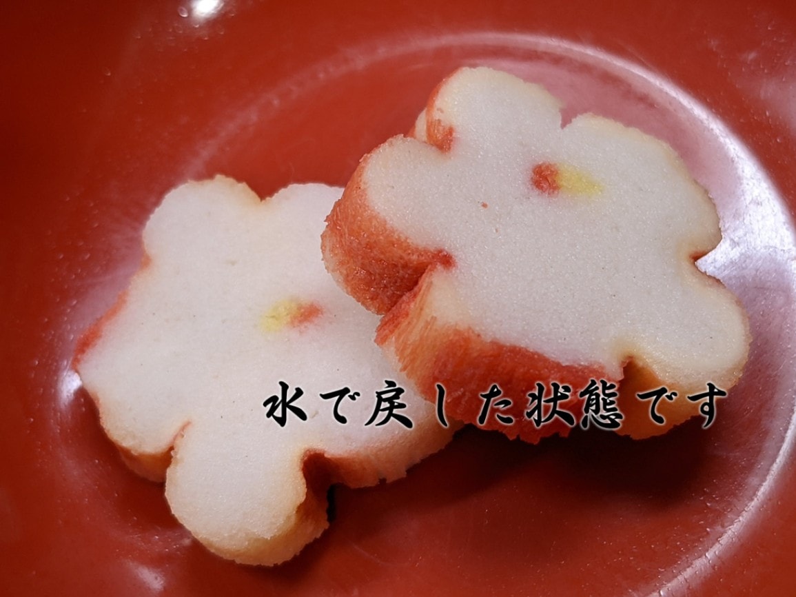 梅の花びらの形をしており、お料理の煮汁を良く吸い、ふわっとした食感が特長の飾り麩です。