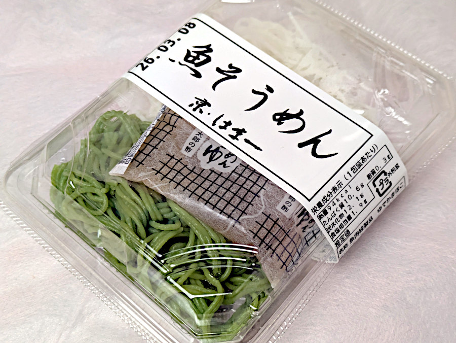 [原材料] 魚肉(たら(輸入))澱粉(小麦、大豆を含む)、発酵調味料、味醂、食塩、抹茶/調味料(アミノ酸等)、トレハロース、クチナシ色素、【つゆ】本醸造醤油(小麦、大豆を含む)、味醂、かつお削節(本節)、めじか節、本節(厚削り)、昆布、梅酢