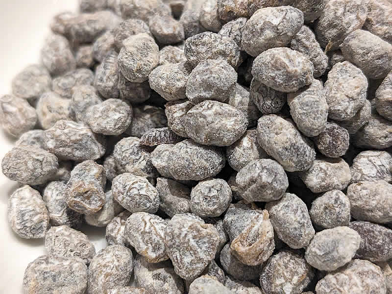 食感というか干し具合は干しレーズンぐらいと申しましょうか、カリカリでは無く、外側は乾いてて触りやすく内側はしっとりと噛みやすいのでご年配の方でも安心して召し上がって頂けると思います