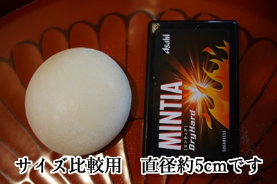 サイズ比較です 直径は約5cmと小さい目の小餅です