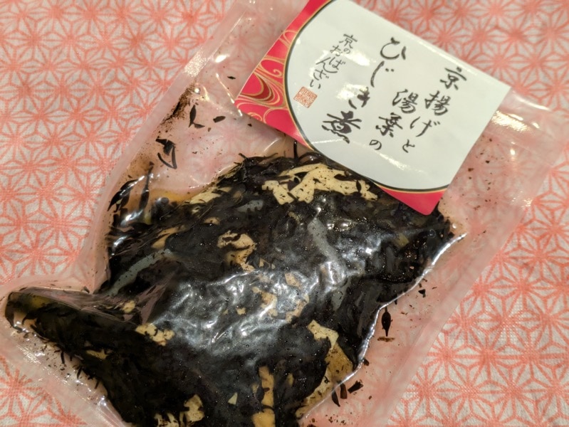 [原材料] ひじき(中国産)、醤油、蒟蒻、人参、砂糖、油揚げ(京都府製造)、湯葉、みりん、だし(かつお、うるめ、まぐろ、昆布、椎茸)風味調味料(鰹)/水酸化Ca、豆腐凝固剤、(一部に小麦・大豆含む)