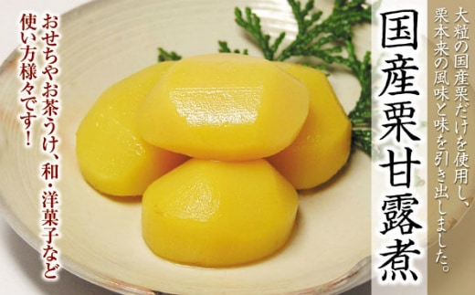 上質の国産栗を使用して上品な甘さの栗甘露煮に仕上げました。